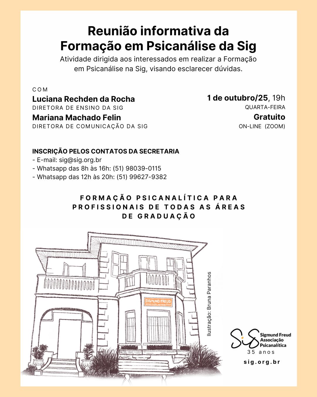 Atividade dirigida aos interessados em realizar a Formação em Psicanálise na Sig
