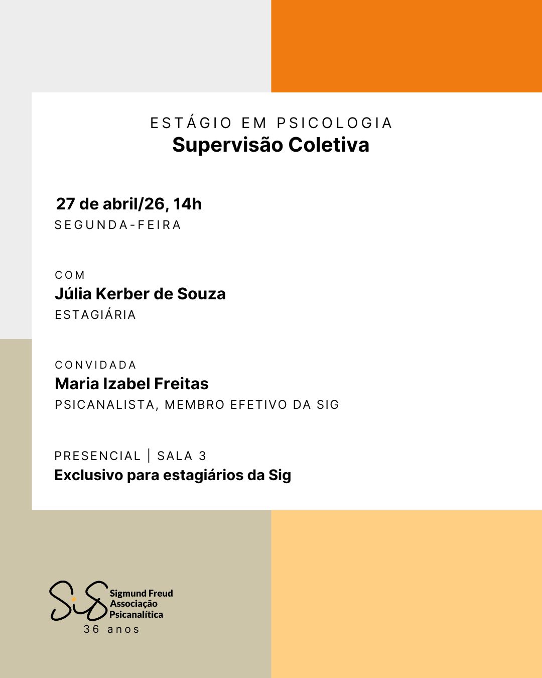 Convidada: Maria Izabel Freitas (Psicanalista, Membro Efetivo da Sig).